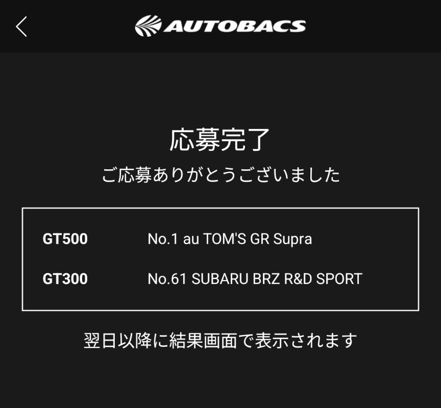 今年も開催されている、オートバックスアプリの、SUPER GT優勝予想キャンペーン。